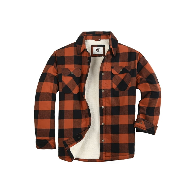 Coevals Club Men S Sherpa Lined Flannel Long Sleeve Cotton Plaid Snap Button Up Shirts Quilted Jacket Brown Black 12 3x Large Walmart Com